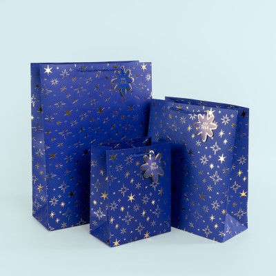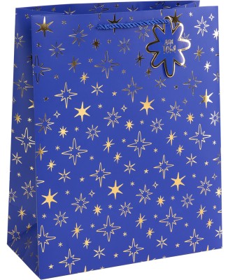 Пакет подарочный, Тысячи созвездий, Дизайн №2, Синий/Золото, Металлик, 41*31*12 см