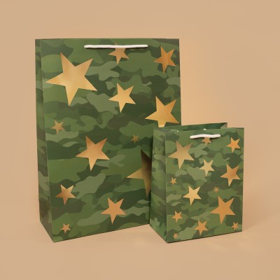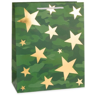 Пакет подарочный, 210гр, Золотые звезды, Камуфляж, Металлик, 41*31*12 см