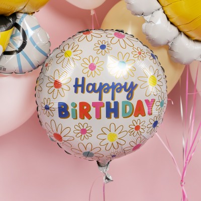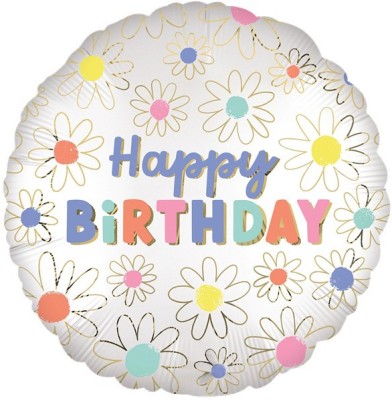 Шар (18''/46 см) Круг, С Днем Рождения (ромашки)