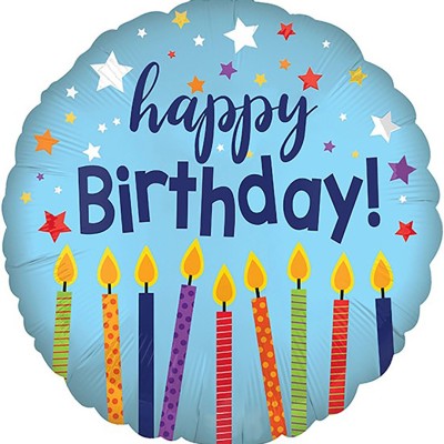 Шар (18''/46 см) Круг, С Днем Рождения (свечи), Голубой