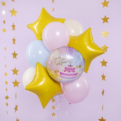 Шар (12''/30 см) С Днем Рождения (яркий праздник), Ассорти, пастель