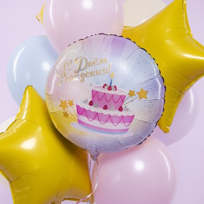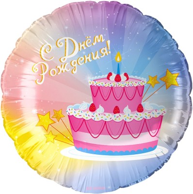 Шар (18''/46 см) Круг, С Днем Рождения! (тортик)