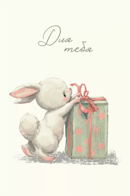 Открытка, Для тебя (зайка с подарком), 10*15 см