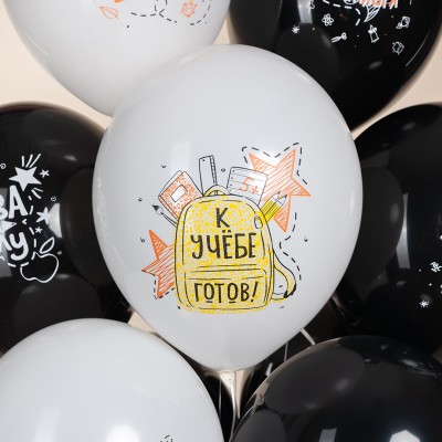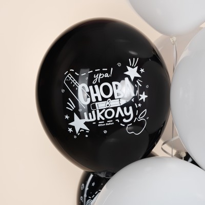 Шар (12''/30 см) 1 Сентября, Снова в Школу, Черный/Белый, пастель