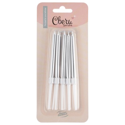 Свечи Серебро, Металлик, 0,6*8 + 4 см, 10 шт. с держат.
