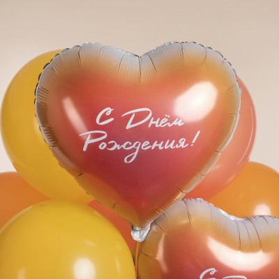 Шар (18''/46 см) Сердце, С Днем Рождения!