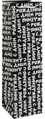 Пакет подарочный для вина, 210гр, С Днем Рождения (шрифты), 38*11*11 см