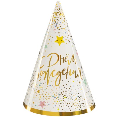Колпаки, С Днем Рождения (сверкающие блестки), Металлик, 16 см, 6 шт. в уп.